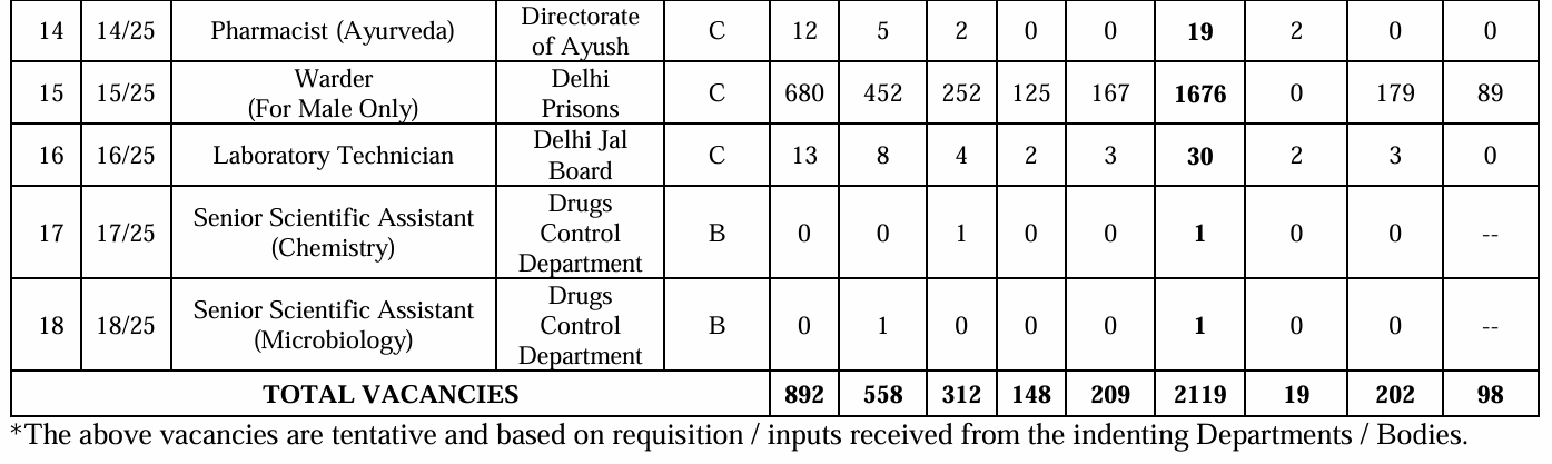 DSSSB Warder & Other Group B/C Recruitment 2025 : Category Wise Vacancy Details |
