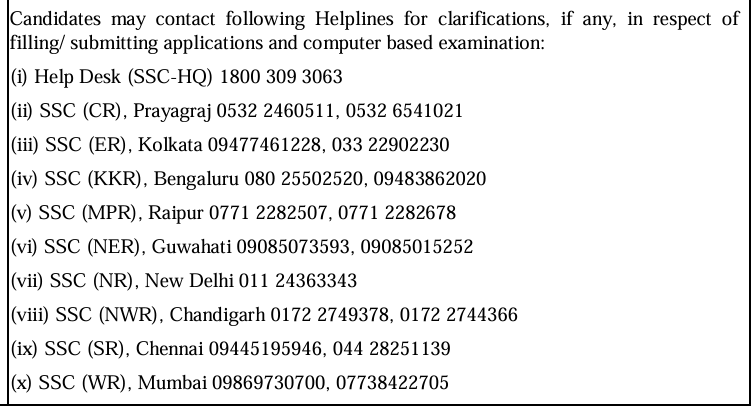 SSC Combined Higher Secondary Level 2025 : Helpline Contacts |